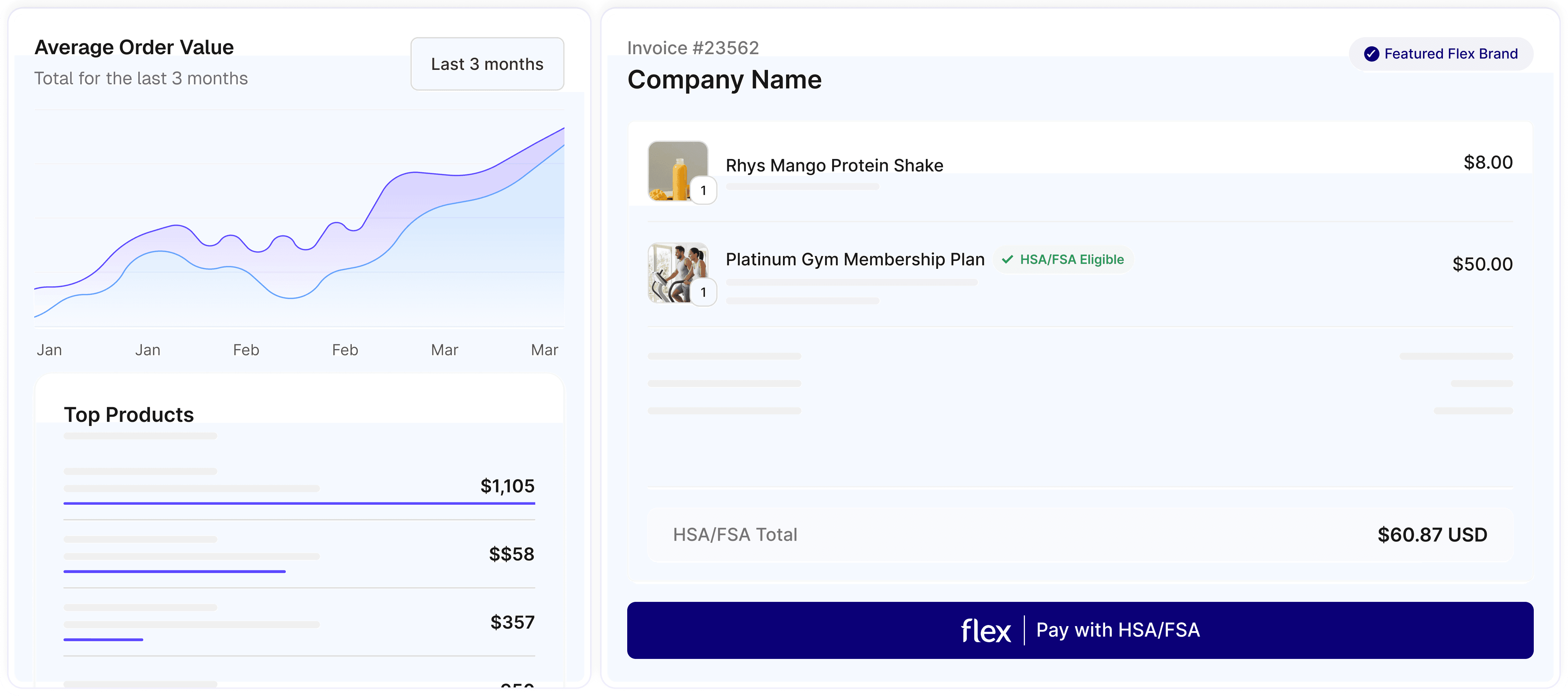 Flex’s streamlined checkout drives up to 30% higher conversion and 50% higher AOV by letting customers pay for fitness equipment and classes directly with their benefits.