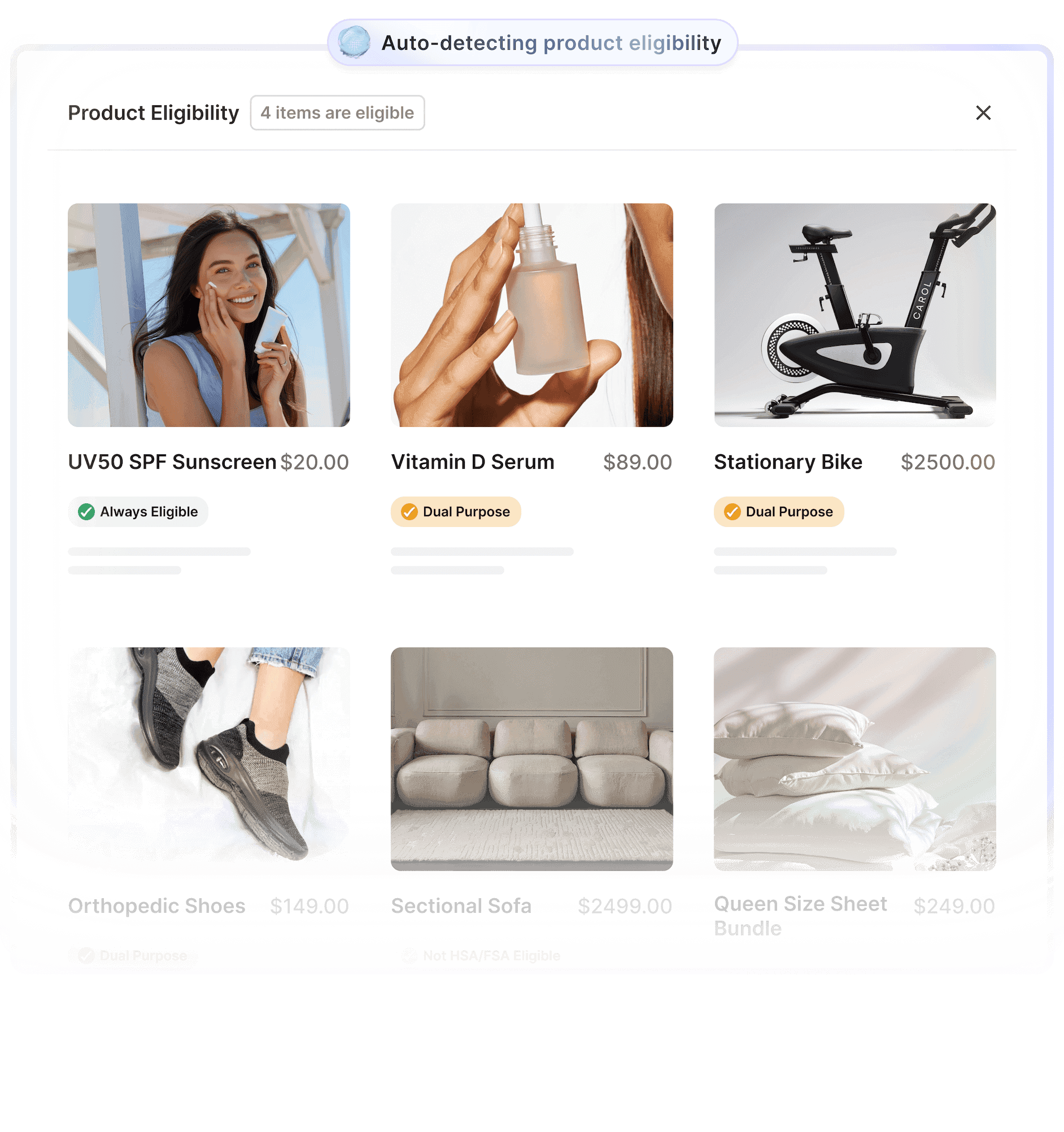 Flex’s Eligibility AI automatically classifies products by HSA/FSA eligibility—helping merchants launch faster and stay compliant.
